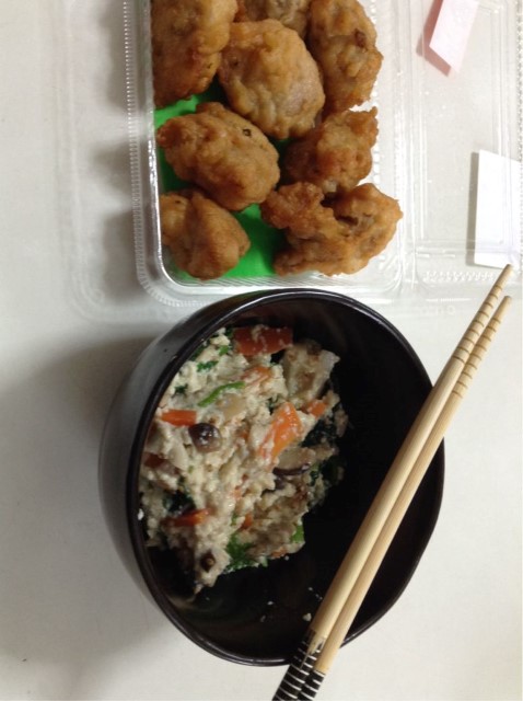 衣だらけの唐揚げは一個半食べてしまったので、合わせて糖質15gくらいかしらorz