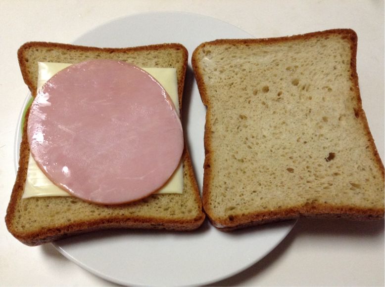 朝食:大豆粉食パンのサンド(ハム&チーズ)+なんちゃってレモネード(ラカント+レモン果汁) 糖質8gくらい