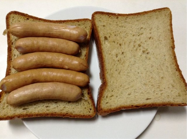 朝食:ホットサンド(糖質ゼロウインナーてんこ盛り) 糖質5gくらい