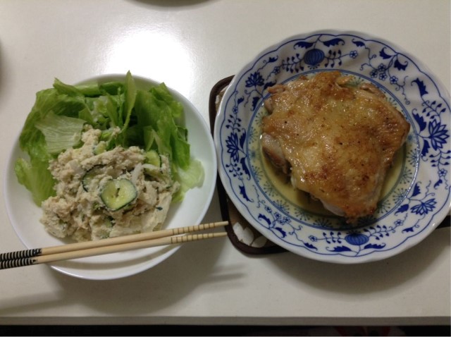 夕食:おからサラダ+鶏ももクレソルソテー 糖質量10gくらい