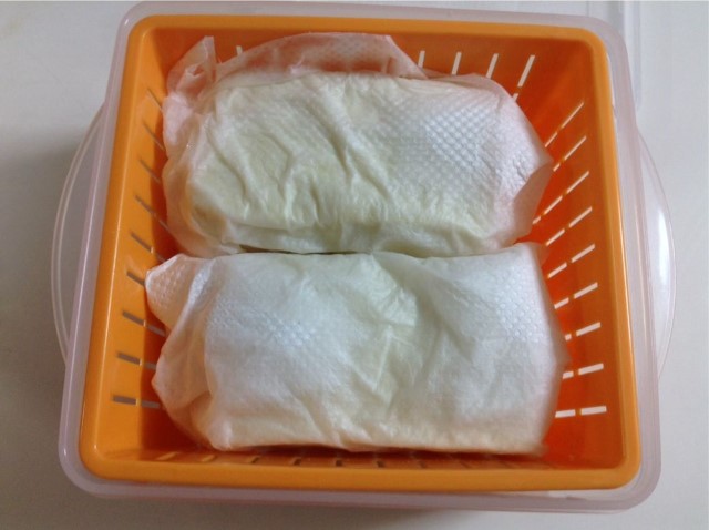明日のために、(消費期限割とギリっぽい)木綿豆腐を塩豆腐に仕込み。