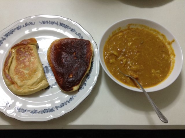 夕食:1日経ったカレー+チーズ大豆ナン 糖質18gくらい