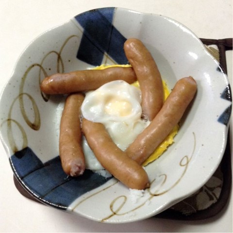 朝食:糖質ゼロウインナーの巣篭もり卵 糖質1g未満