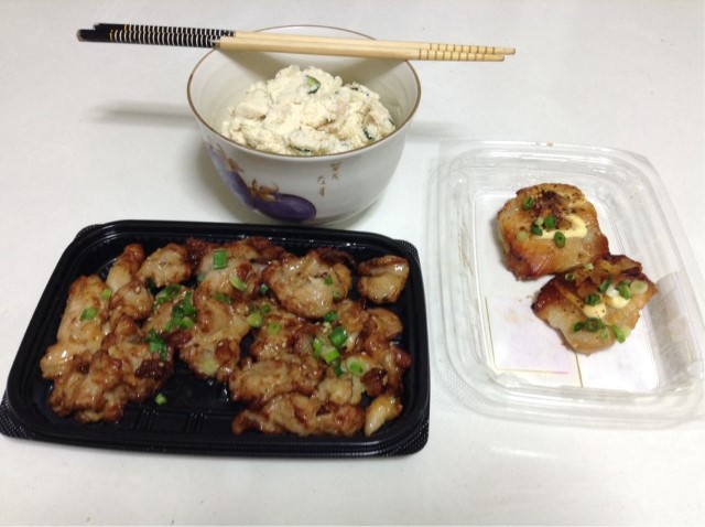夕食:ネギ塩チキン&ガーリックマヨチキン&おからサラダ 糖質16gくらい