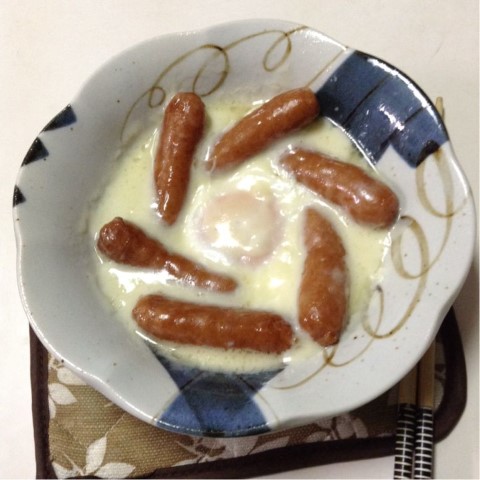 朝食:ウインナーの巣篭もりたまご+チーズ 糖質6gくらい
