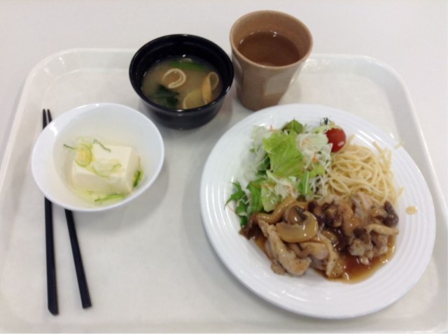 昼食:チキンステーキ きのこバター醤油ソース パスタ残し 糖質19gくらい