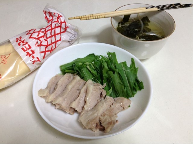 夕食:茹で豚ともやしとワカメのスープ 糖質3gくらい