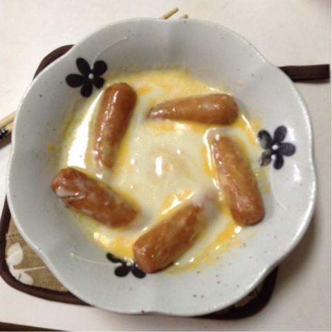 朝食:ウインナーの巣篭もりたまご チーズのっけ 糖質6gくらい