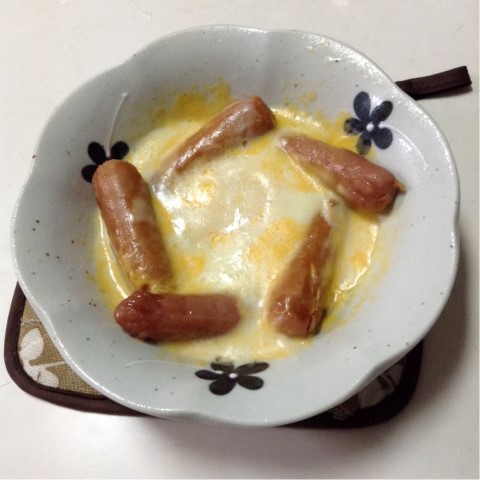 朝食:ウインナーの巣篭もりたまご チーズのっけ 糖質6gくらい