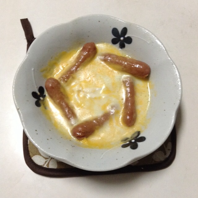 朝食:ウインナーの巣篭もりたまご チーズのっけ 糖質6gくらい