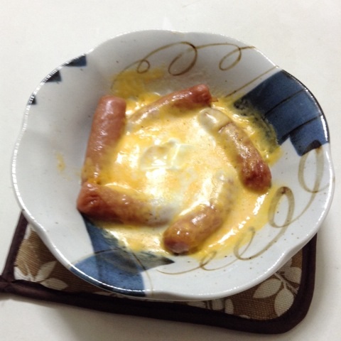 朝食:ウインナーの巣篭もりたまご チーズのっけ 糖質6gくらい