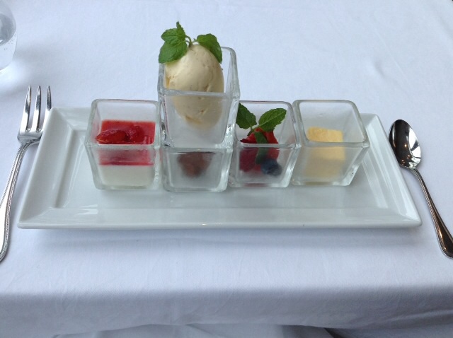 いちごのムース、バニラアイス、チョコレート、ベリー盛り合わせ、チーズケーキ