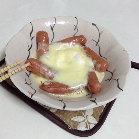 チェダーチーズを切らしてしまったので、普通のとろけるチーズのみで。