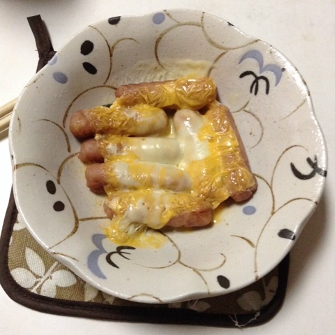 朝食:ウインナーのチーズのっけ 糖質7gくらい