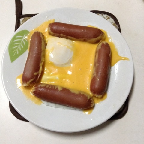 朝食:ウインナーの巣篭もりたまご チーズのっけ 糖質8gくらい