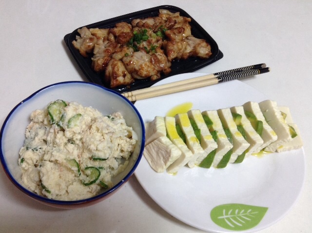 夕飯:ネギ塩チキン&おからサラダ&塩豆腐+アボカド 糖質11gくらい