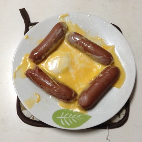 朝食:ウインナーの巣篭もりたまご チーズのっけ 糖質8gくらい