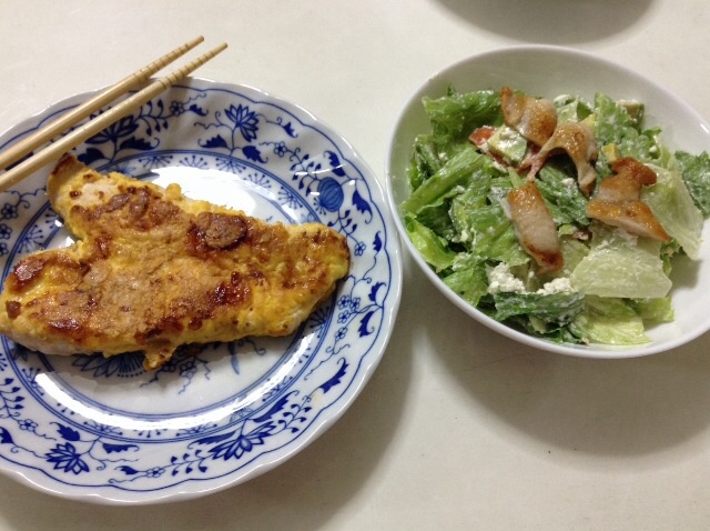 夕食:チキンピカタ&アボカドご馳走サラダ 糖質6gくらい