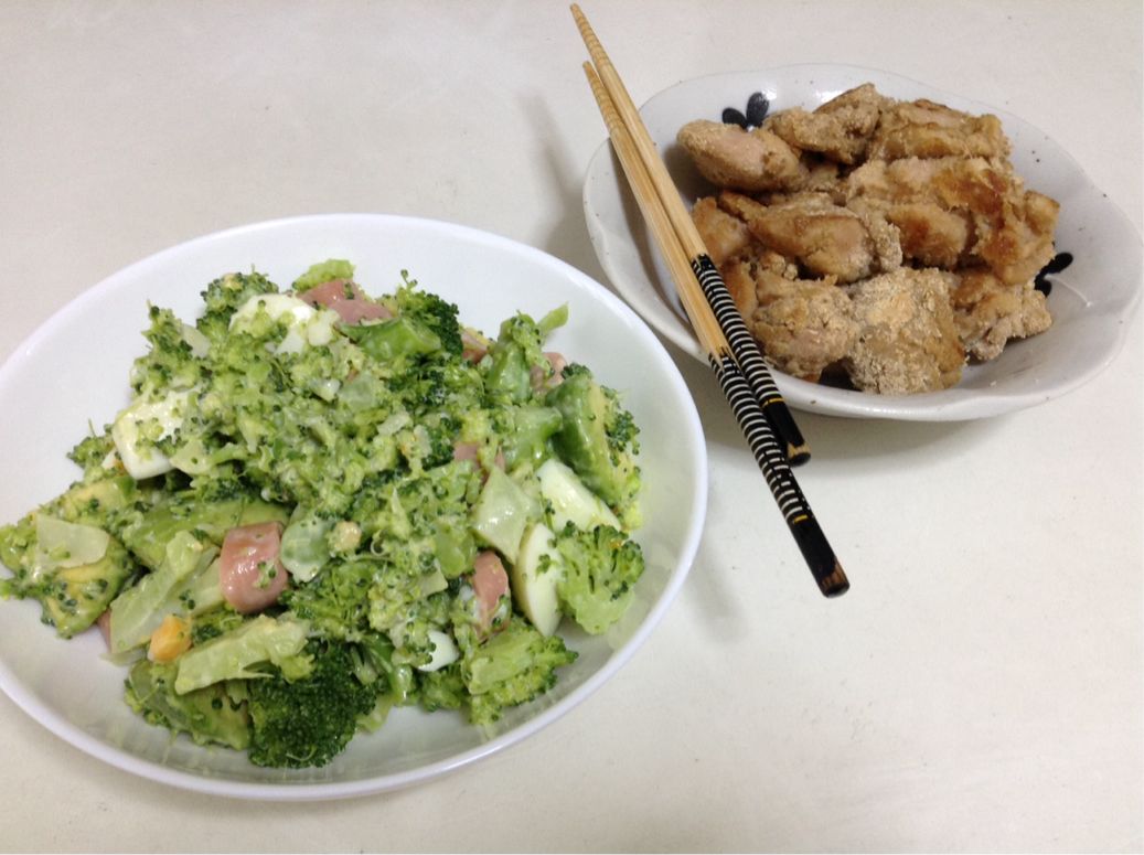 昼食:少佐サラダ&鶏のなんちゃって唐揚げ 糖質5gくらい