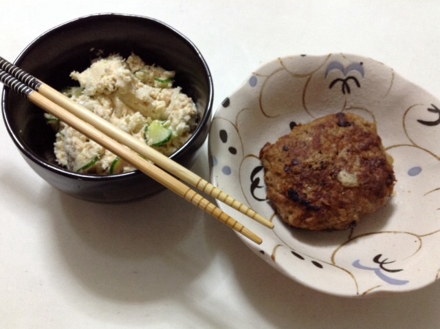 夕食:ハンバーグ&おからサラダ 糖質12gくらい