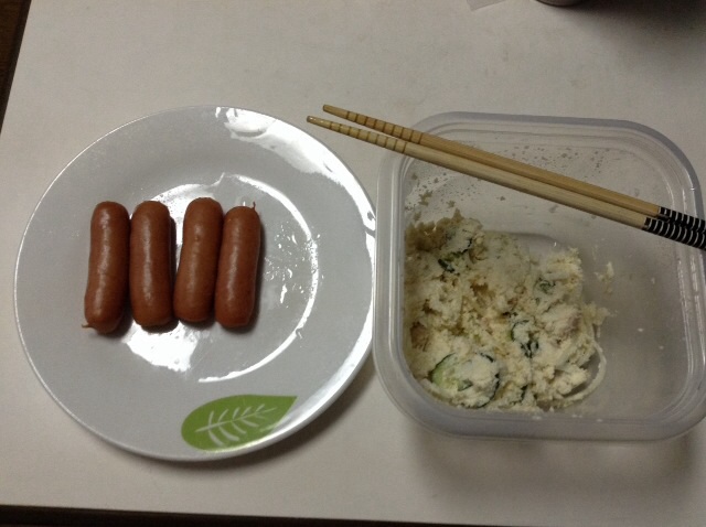 朝食:おからサラダ&ウインナー(3本) 糖質7gくらい