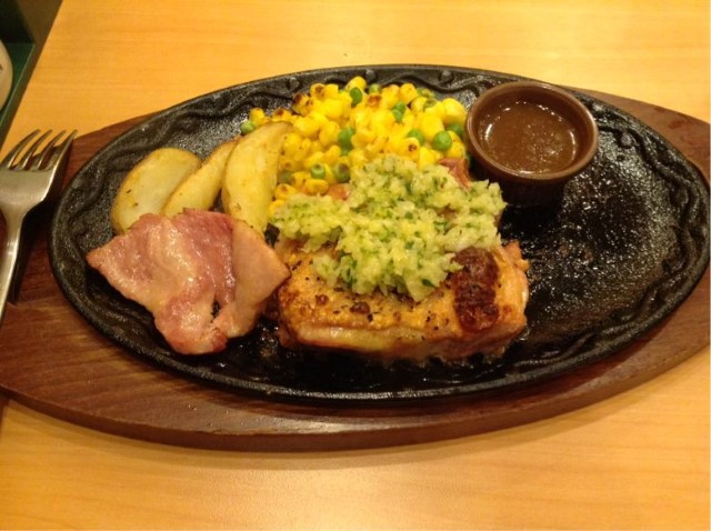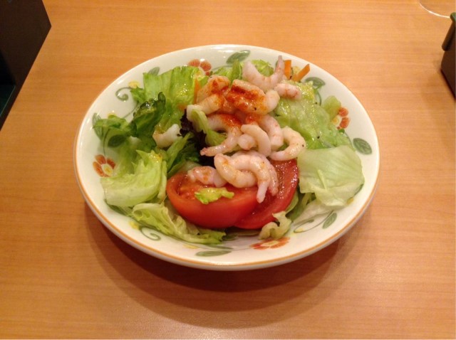 夕食:パンチェッタと若鶏のグリル(ソースと付け合わせは残しました)+小エビのサラダ(オリーブオイルドレッシングに変更) 糖質量不明 たぶん10gくらい?