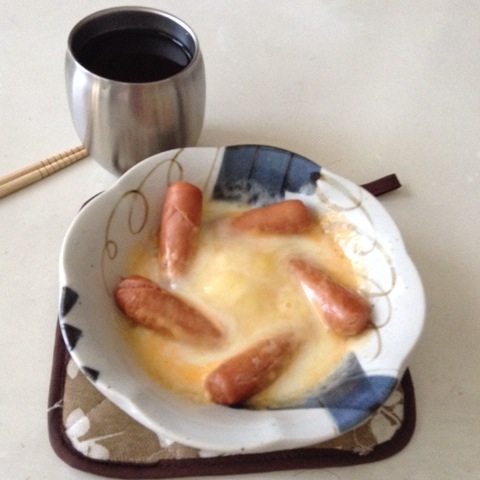 今朝はウインナー、たまご、チーズで完全にMECにしてみました。