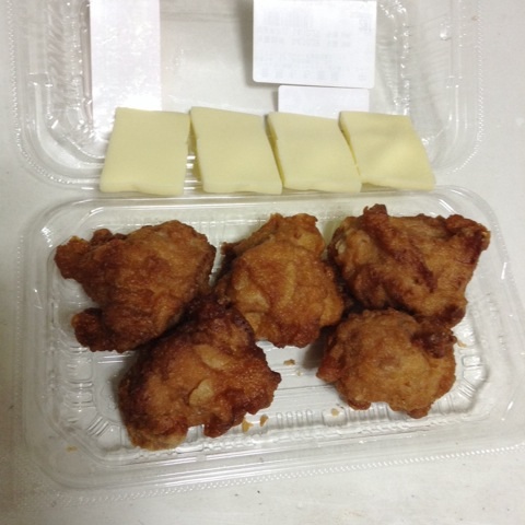夕食:唐揚げとチーズ