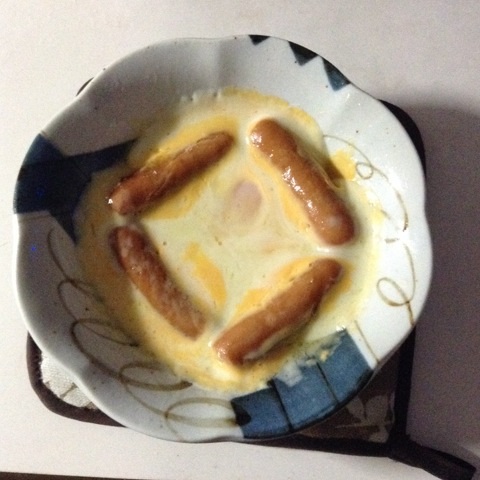 朝食:ウインナーの巣篭もり卵 チーズのっけ
