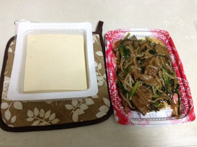 朝食:豆腐とレバニラ